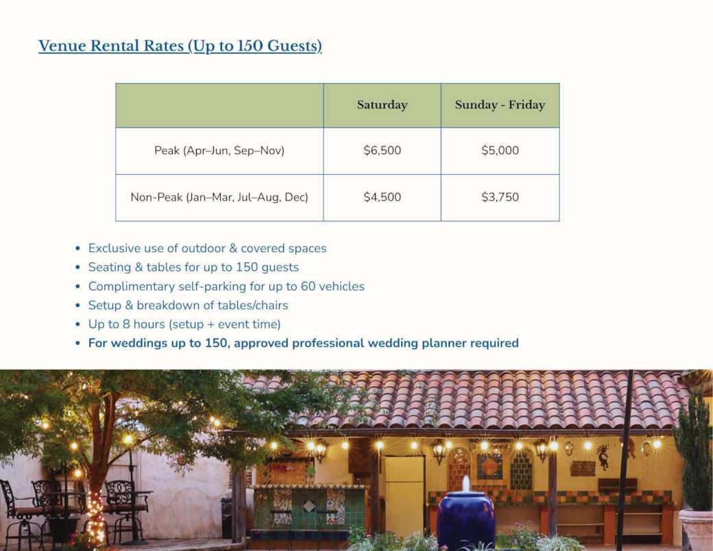 La Hacienda Outdoor Event Venue Rates